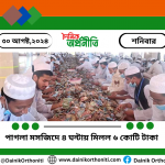 কিশোরগঞ্জের পাগলা মসজিদের ১১টি দানসিন্দুকের টাকা গণনা অব্যাহত আছে। তবে আজ শনিবার দুপুর ১২টা পর্যন্ত চার ঘণ্টার গণনায় পাওয়া গেছে ছয় কোটি টাকা। বর্তমানে খুচরা টাকা গণনা করা হচ্ছে। গণনা শেষ হতে সন্ধ্যা লেগে যেতে পারে।