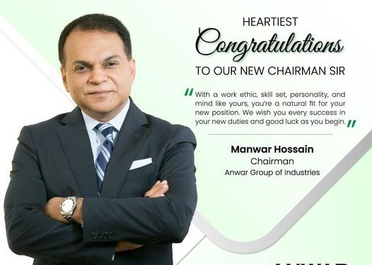 শনিবার (১১ সেপ্টেম্বর) গ্রুপের নতুন চেয়ারম্যান হিসেবে তার নাম ঘোষণা করা হয়। এরপরই তিনি চেয়ারম্যানের দায়িত্ব গ্রহণ করেন। আনোয়ার গ্রুপ দেশের প্রথম শিল্পোদ্যোক্তা হিসেবে অনেক কিছু প্রতিষ্ঠা করেছে।