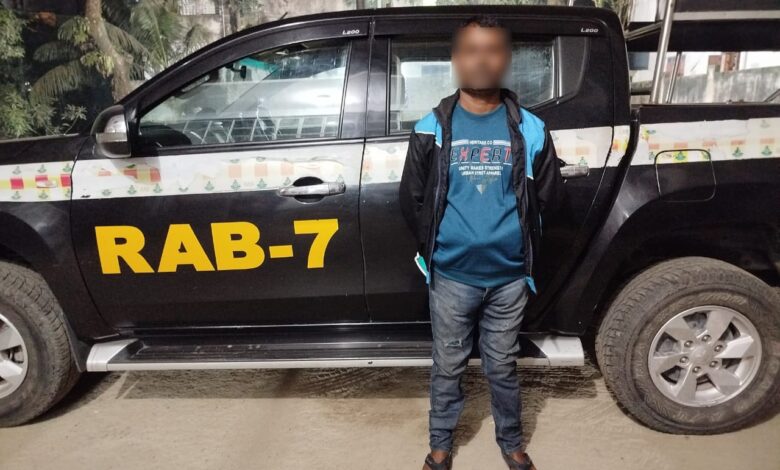 এর ভিত্তিতে গত ০৯ ডিসেম্বর ২০২৫ তারিখ সন্ধ্যা ৬টা ৪০ মিনিটে (১৮:৪০) র্যাব-৭–এর একটি আভিযানিক দল ফেনী সদর থানার চেওরিয়া এলাকায় অভিযান পরিচালনা করে আলাউদ্দিন প্রকাশ তোতা (২৮)–কে গ্রেপ্তার করে। তিনি ফেনী জেলার সোনাগাজী থানার মহদিয়া এলাকার মৃত রবিউল হক প্রকাশ রফিকের ছেলে।