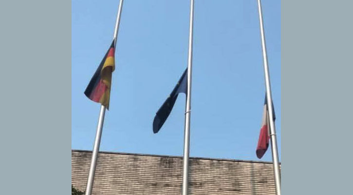 ইনকিলাব মঞ্চের আহ্বায়ক শরিফ ওসমান হাদির মৃত্যুতে ঢাকার ফ্রাঙ্কো-জার্মান দূতাবাসের পতাকা অর্ধনমিত রাখা হয়েছে।