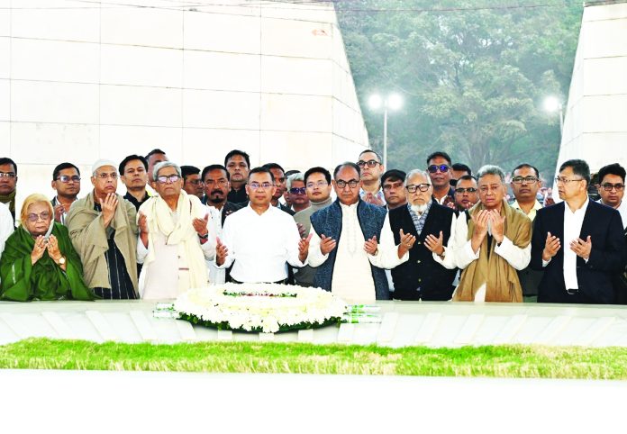 রাতে জাতীয় স্মৃতিসৌধে শ্রদ্ধা : সাভারে জাতীয় স্মৃতিসৌধে গিয়ে একাত্তরের বীর শহীদদের শ্রদ্ধা জানিয়েছেন বিএনপির ভারপ্রাপ্ত চেয়ারম্যান তারেক রহমান। গতকাল শুক্রবার বিকাল ৫টা ৪ মিনিটে জিয়া উদ্যান থেকে স্মৃতিসৌধের উদ্দেশ্যে রওনা হন তিনি। সেখানে পৌঁছাতে সময় লাগে পাঁচ ঘণ্টার মতো। রাত ১০টার দিকে স্মৃতিসৌধে পৌঁছে একাত্তরের বীর শহীদদের প্রতি শ্রদ্ধা জানান তারেক রহমান। এর আগে দুপুরে তারেক রহমান তার বাবা বিএনপির প্রতিষ্ঠাতা জিয়াউর রহমানের কবর জিয়ারত করতে শেরেবাংলা নগরে যান। ২টা ২০ মিনিটে তার গাড়িবহর গুলশানের ১৯৬ নম্বর বাড়ির সামনে থেকে জিয়া উদ্যানের পথে রওনা দেয়। আগের দিন যে বুলেটপ্রুফ বাসে করে তিনি বিমানবন্দর থেকে এসেছিলেন, সেই বাসে করেই তিনি শেরেবাংলা নগরে যান।