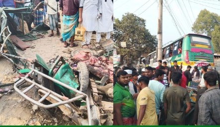 এসময় একটি ফলের দোকান সম্পূর্ণ ধ্বংস ও একটি চায়ের দোকান ও একটি মাংসের দোকান ক্ষতিগ্রস্ত হয়ে গেছে এবং পাশে থাকা একটি সিএনজিচালিত অটোরিকশা ভেঙে লণ্ডভণ্ড হয়ে যায়।