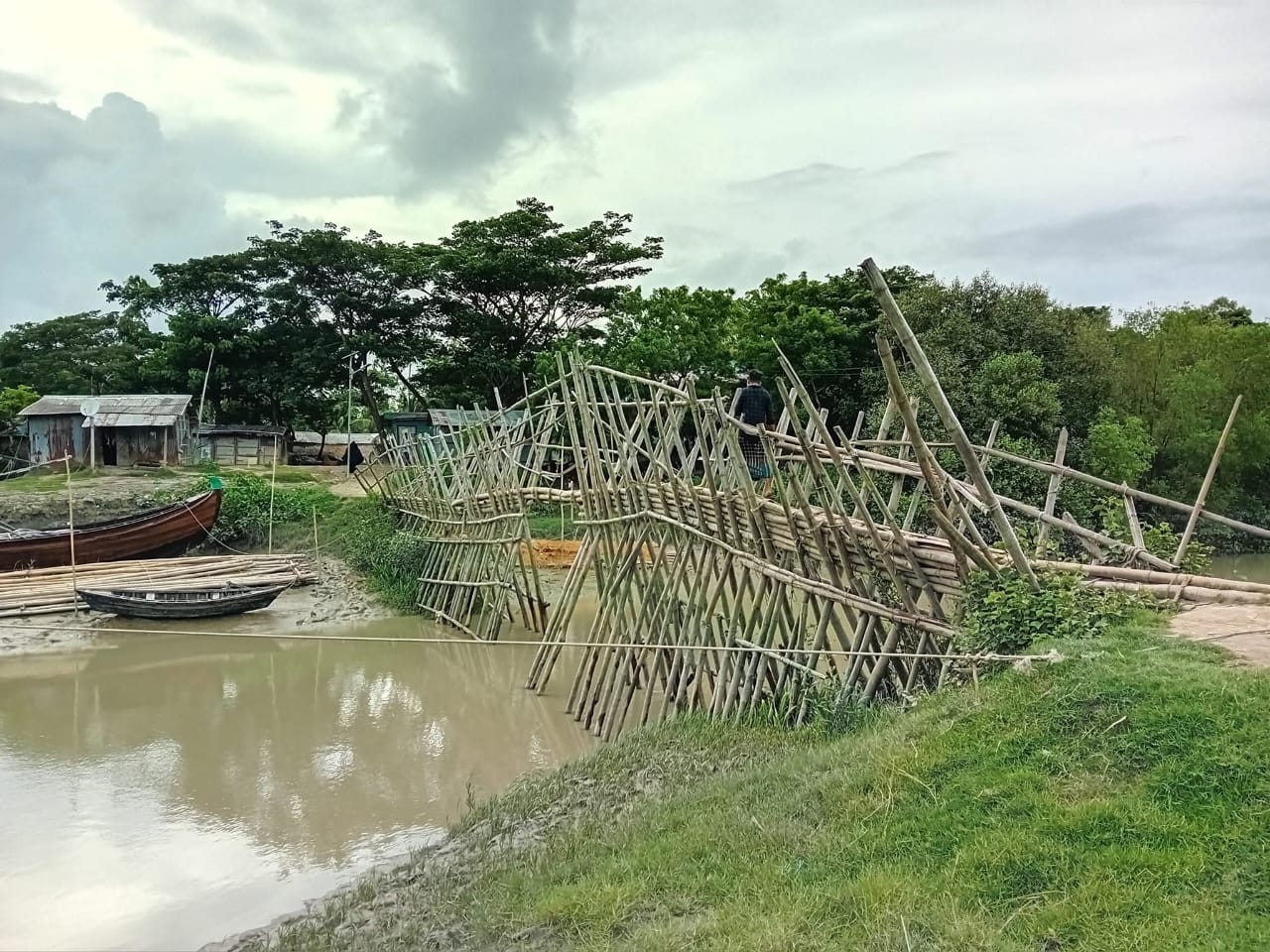 সরেজমিনে দেখা যায়, জোড়াতালি দিয়ে তৈরি বাঁশের সাঁকোটির অবস্থা অত্যন্ত নাজুক। অনেক জায়গায় বাঁশ ফেটে গেছে, কোথাও বেঁধে রাখা রশি খুলে গেছে। বর্ষা মৌসুমে খালের পানি বেড়ে গেলে সাঁকোর নিচ পর্যন্ত পানি উঠে আসে। তখন সামান্য ঢেউ বা ভারসাম্য হারালেই বড় ধরনের দুর্ঘটনার আশঙ্কা থাকে।