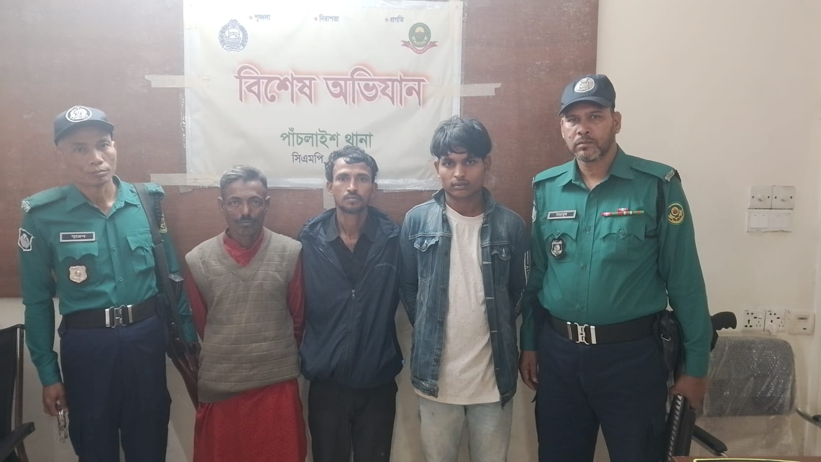 চট্টগ্রাম মহানগরীর পাঁচলাইশ মডেল থানা এলাকায় বিশেষ অভিযান পরিচালনা করে সন্দেহভাজন তিন ব্যক্তিকে গ্রেফতার করেছে পুলিশ।