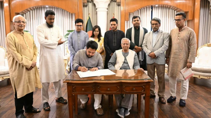 জানা গেছে, আজ সন্ধ্যা ৬টায় এনসিপির একটি উচ্চপর্যায়ের প্রতিনিধিদল যমুনায় উপস্থিত হয়ে এই স্বাক্ষর কার্যক্রমে অংশ নেয়। প্রতিনিধিদলে এনসিপির আহ্বায়ক নাহিদ ইসলাম ছাড়াও ছিলেন দলটির সদস্য সচিব আখতার হোসেন, যুগ্ম আহ্বায়ক সারোয়ার তুষার, জাভেদ রাসিন, মনিরা শারমিন এবং যুগ্ম সদস্য সচিব জহিরুল ইসলাম মুসা।