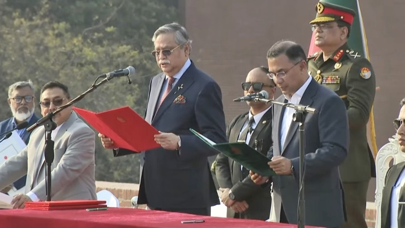 মঙ্গলবার (১৭ ফেব্রুয়ারি) বিকেলে জাতীয় সংসদ ভবনের দক্ষিণ প্লাজায় রাষ্ট্রপতি মো. সাহাবুদ্দিন নতুন প্রধানমন্ত্রীর শপথবাক্য পাঠ করান। শপথ অনুষ্ঠান সঞ্চালনা করেন মন্ত্রিপরিষদ সচিব নাসিমুল গনি।
