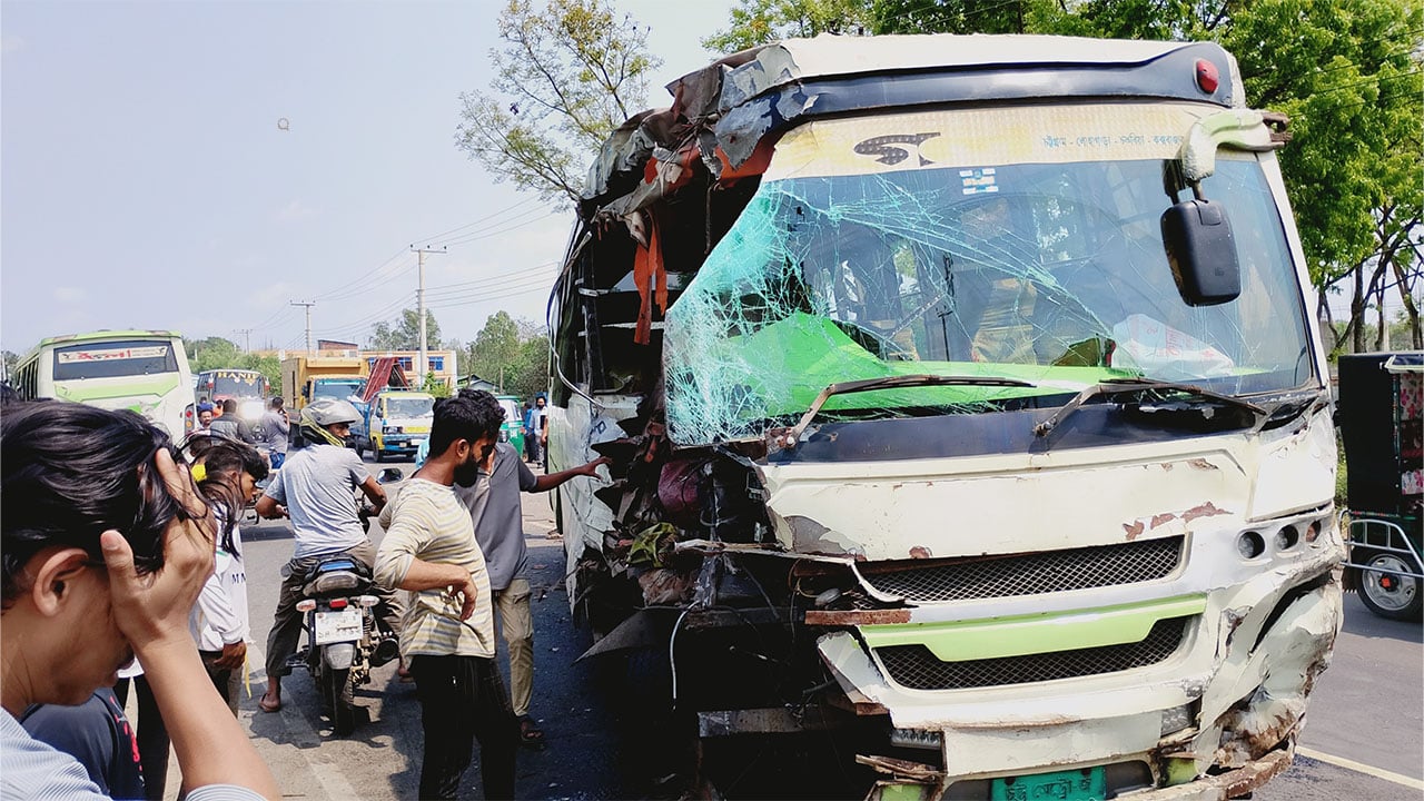 মার্সা পরিবহনের যাত্রী মোহাম্মদ বাহার বলেন, জলুয়ার দিঘী পাড় এলাকায় খড়ের স্তূপ থেকে অনবরত ধোঁয়া বের হচ্ছিল। ধোঁয়ার কারণে সামনে কিছুই দেখা যাচ্ছিল না। এতে মার্সা পরিবহনের বাসের চালক হঠাৎ ব্রেক করলে বিপরীত দিক থেকে আসা ঈগল পরিবহনের বাসের সঙ্গে মুখোমুখি সংঘর্ষ হয়।