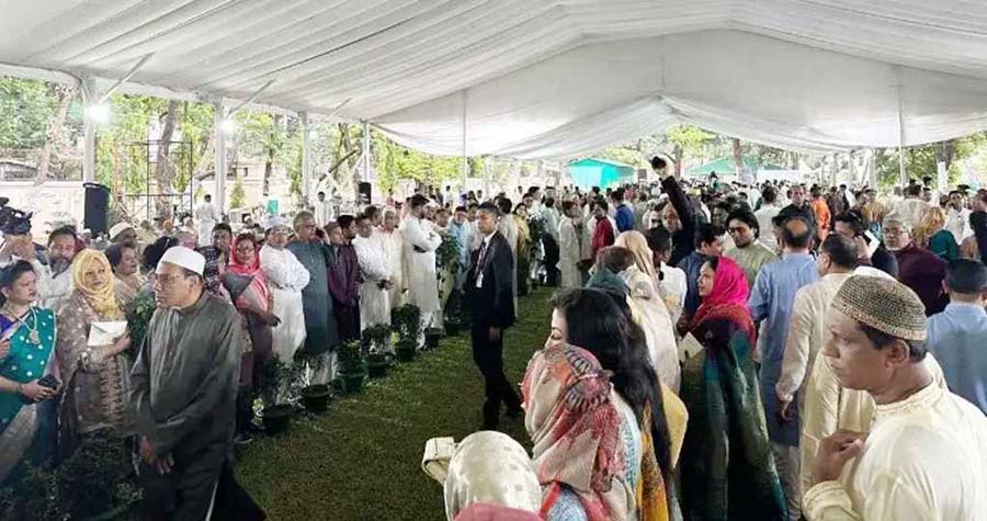 এর আগে সকালে হাইকোর্ট প্রাঙ্গণে জাতীয় ঈদগাহ ময়দানে ঈদুল ফিতরের প্রধান জামাতে অংশ নিয়ে নামাজ আদায় করেন রাষ্ট্রপতি মো. সাহাবুদ্দিন ও প্রধানমন্ত্রী তারেক রহমান। সকাল সাড়ে ৮টায় প্রধান জামাত অনুষ্ঠিত হয়।