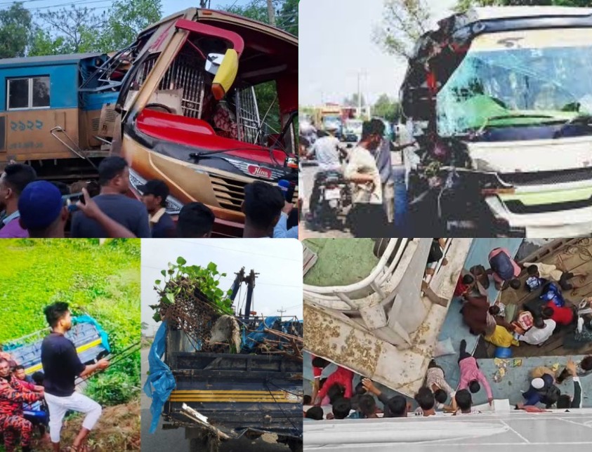 দেশের পাঁচ জেলায় সড়ক দুর্ঘটনায় ২৪ জনের মৃত্যু হয়েছে। এর মধ্যে কুমিল্লায় যাত্রীবাহী বাসে ট্রেনের ধাক্কায় ১২ জন, ফেনীতে বাস, অ্যাম্বুলেন্স ও মোটরসাইকেলের ত্রিমুখী সংঘর্ষে তিনজন এবং হবিগঞ্জে বাসের সঙ্গে পিকআপ ভ্যানের সংঘর্ষে চারজন নিহত হয়েছেন।