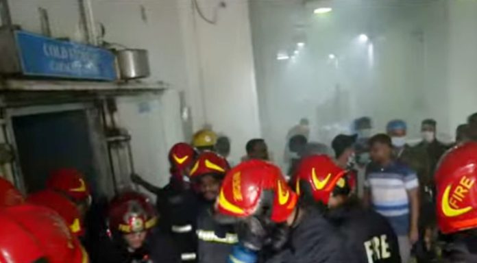 রোববার (২৯ মার্চ) দুপুরে কোল্ড স্টোরেজে এই আগুনের সূত্রপাত হয়। মুহূর্তের মধ্যেই আগুনের লেলিহান শিখা পুরো গুদামে ছড়িয়ে পড়ে এবং ধোঁয়ায় আচ্ছন্ন হয়ে যায় চারপাশ।