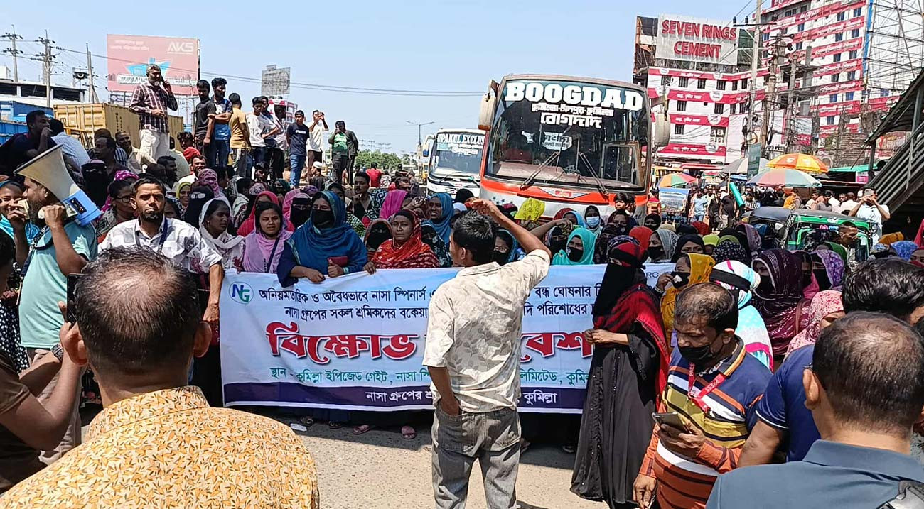 বকেয়া বেতন পরিশোধের দাবিতে কুমিল্লায় ঢাকা-চট্টগ্রাম মহাসড়ক অবরোধ করেছেন ইপিজেডের নাসা গ্রুপের শ্রমিকরা। মঙ্গলবার (৭ এপ্রিল) সকাল ১০টায় পূর্বঘোষিত কর্মসূচির অংশ হিসেবে তারা মহাসড়কের পদুয়ার বাজার এলাকায় অবস্থান নেন।