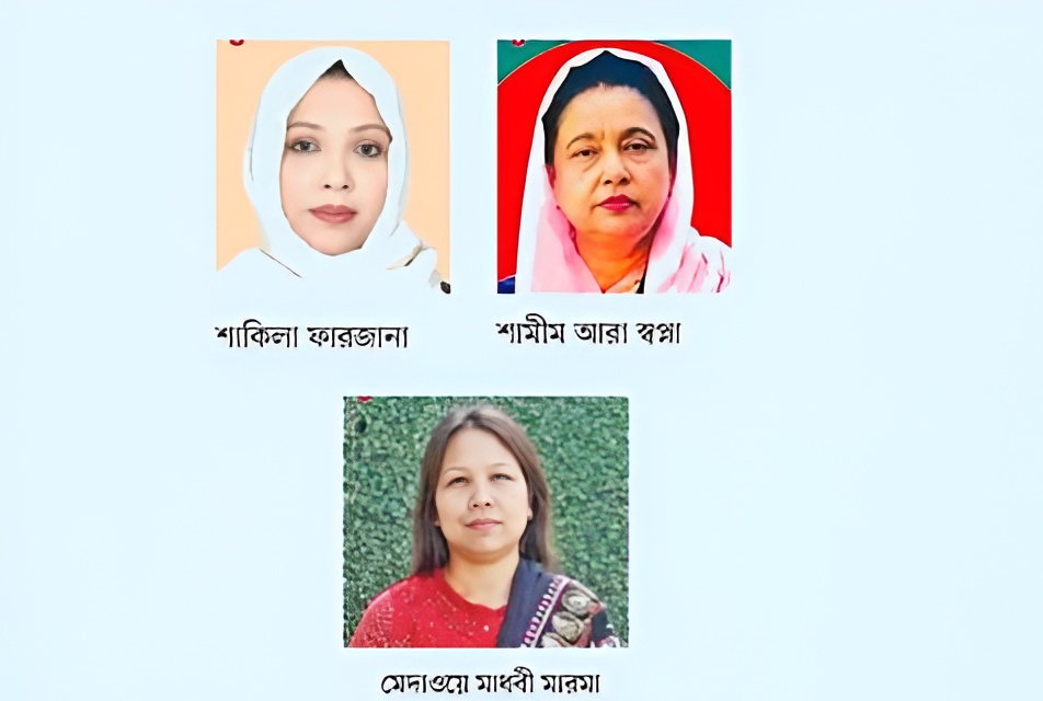 সংরক্ষিত নারী আসনে বিএনপির মনোনয়ন পেয়েছেন চট্টগ্রাম, কক্সবাজার ও বান্দরবানের তিন নেত্রী। তাঁরা হলেন চট্টগ্রাম উত্তর জেলা বিএনপির আহ্বায়ক কমিটির সাবেক সদস্য শাকিলা ফারজানা, কক্সবাজার জেলা বিএনপির সাধারণ সম্পাদক শামীম আরা স্বপ্না এবং বান্দরবানের আইনজীবী মেদাওয়ে মাধবী মারমা।