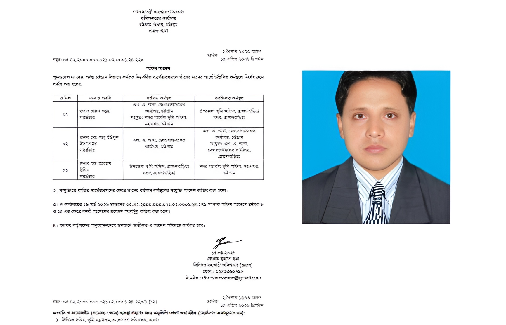 চট্টগ্রামে ভূমি অধিগ্রহণ শাখায় দীর্ঘদিন ধরে চলে আসা অনিয়ম ও দুর্নীতির অভিযোগের মধ্যেই আবারও আলোচনায় সার্ভেয়ার মো. আবু ইউসুফ ইফতেখার। সর্বশেষ বিভাগীয় কমিশনার কার্যালয়ের জারি করা বদলি আদেশে তাকে অন্য জেলায় সংযুক্ত করা হলেও বাস্তবে তিনি আগের অবস্থানেই সক্রিয় রয়েছেন—এমন অভিযোগ উঠেছে, যা প্রশাসনিক স্বচ্ছতা নিয়ে নতুন করে প্রশ্ন তৈরি করেছে।গত ১৫ এপ্রিল ২০২৬ তারিখে চট্টগ্রাম বিভাগীয় কমিশনার কার্যালয়ের রাজস্ব শাখা থেকে জারি করা অফিস আদেশে (স্মারক: ০৫.৪২.২০০০.০০০.০৩১.০২.০০০১.২৪.২২৯) তিনজন সার্ভেয়ারকে বদলি করা হয়। সিনিয়র সহকারী কমিশনার (রাজস্ব) গোলাম মুস্তাফা মুন্না স্বাক্ষরিত ওই আদেশে মো. আবু ইউসুফ ইফতেখারকে চট্টগ্রাম জেলা প্রশাসকের কার্যালয়ের এল.এ. শাখা থেকে ব্রাহ্মণবাড়িয়া জেলা প্রশাসকের কার্যালয়ের এল.এ. শাখায় সংযুক্ত করার নির্দেশ দেওয়া হয় এবং আদেশটি “অবিলম্বে কার্যকর” বলেও উল্লেখ করা হয়। বাকি ২জন বদলিকৃত কর্মস্থলে যোগদান করলেও আবু ইউসুফ করেননি।